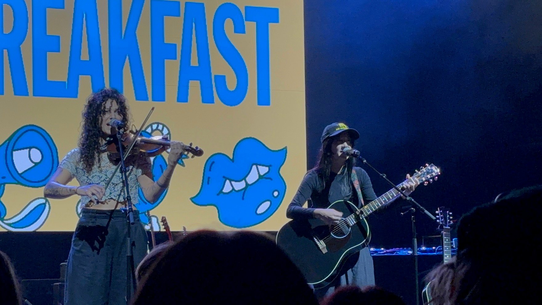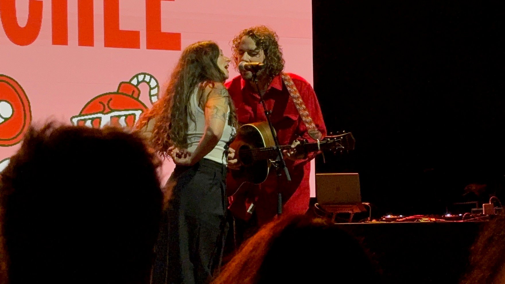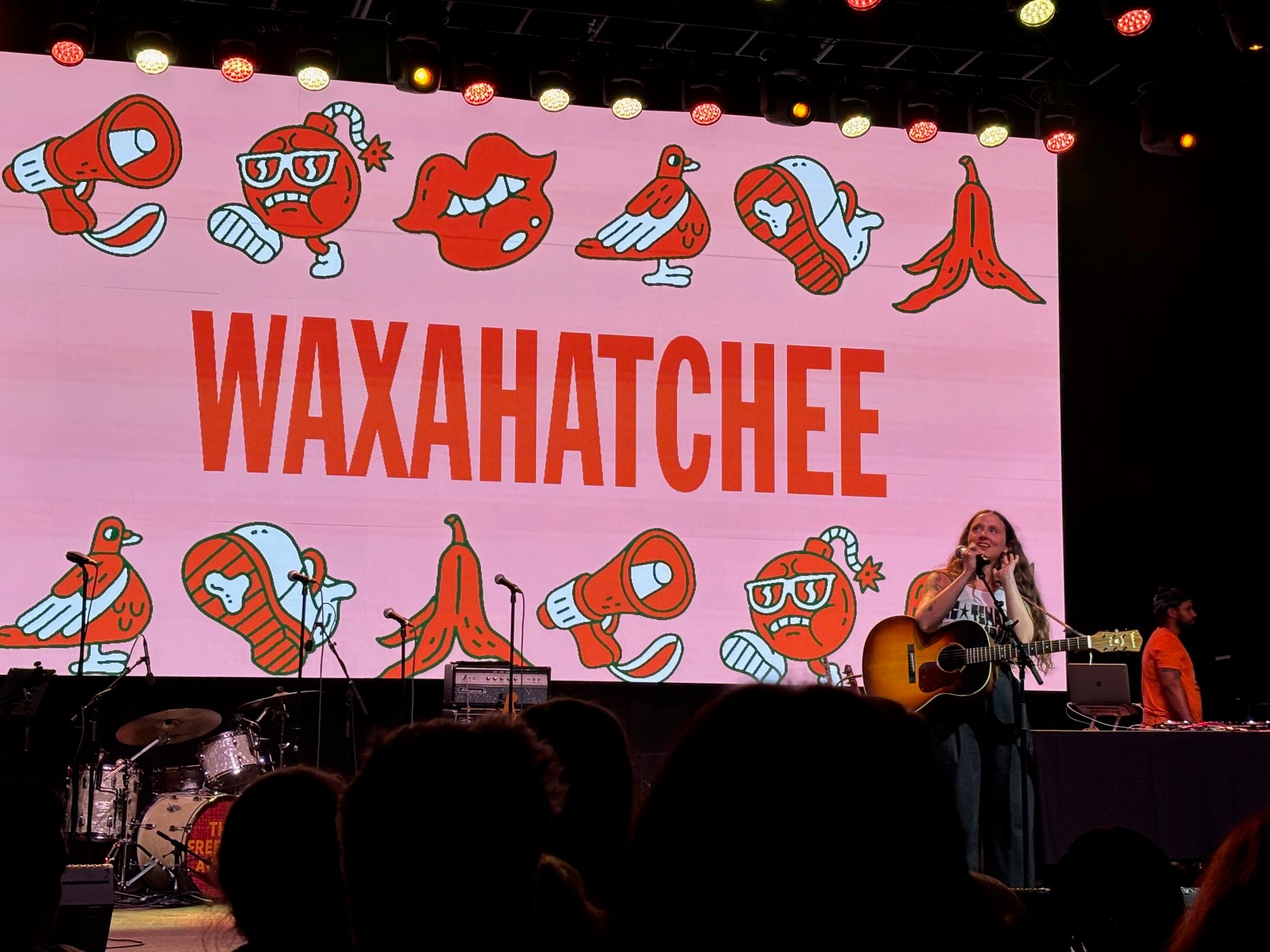 Finally, Waxahatchee closed out the night with her signature country-tinged indie folk sound. Opening with “Crowbar,” she immediately set a contemplative tone. Without a setlist, she took audience requests—a choice that might’ve seemed chaotic in lesser hands but instead felt authentic and spontaneous. Her collaboration with Kevin Morby on a Bob Dylan cover was one of the evening’s most beautiful moments, their voices blending effortlessly even as they forgot a few lyrics (a slip the crowd found endearing). The two also performed a song they co-wrote to celebrate Caleb Hearon’s HBO Max special, “Model Comedian”, a fitting full-circle moment that tied the night’s community spirit together.