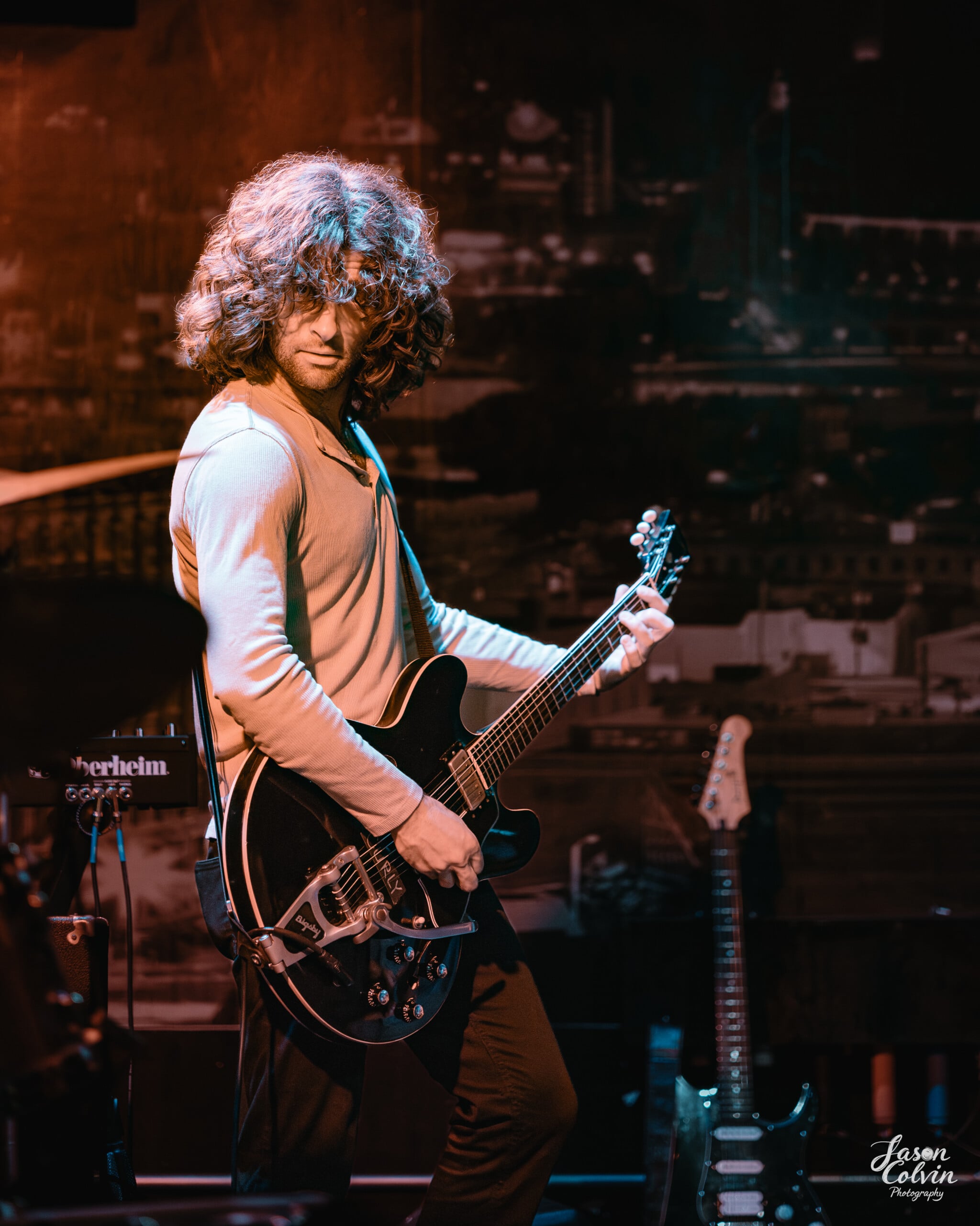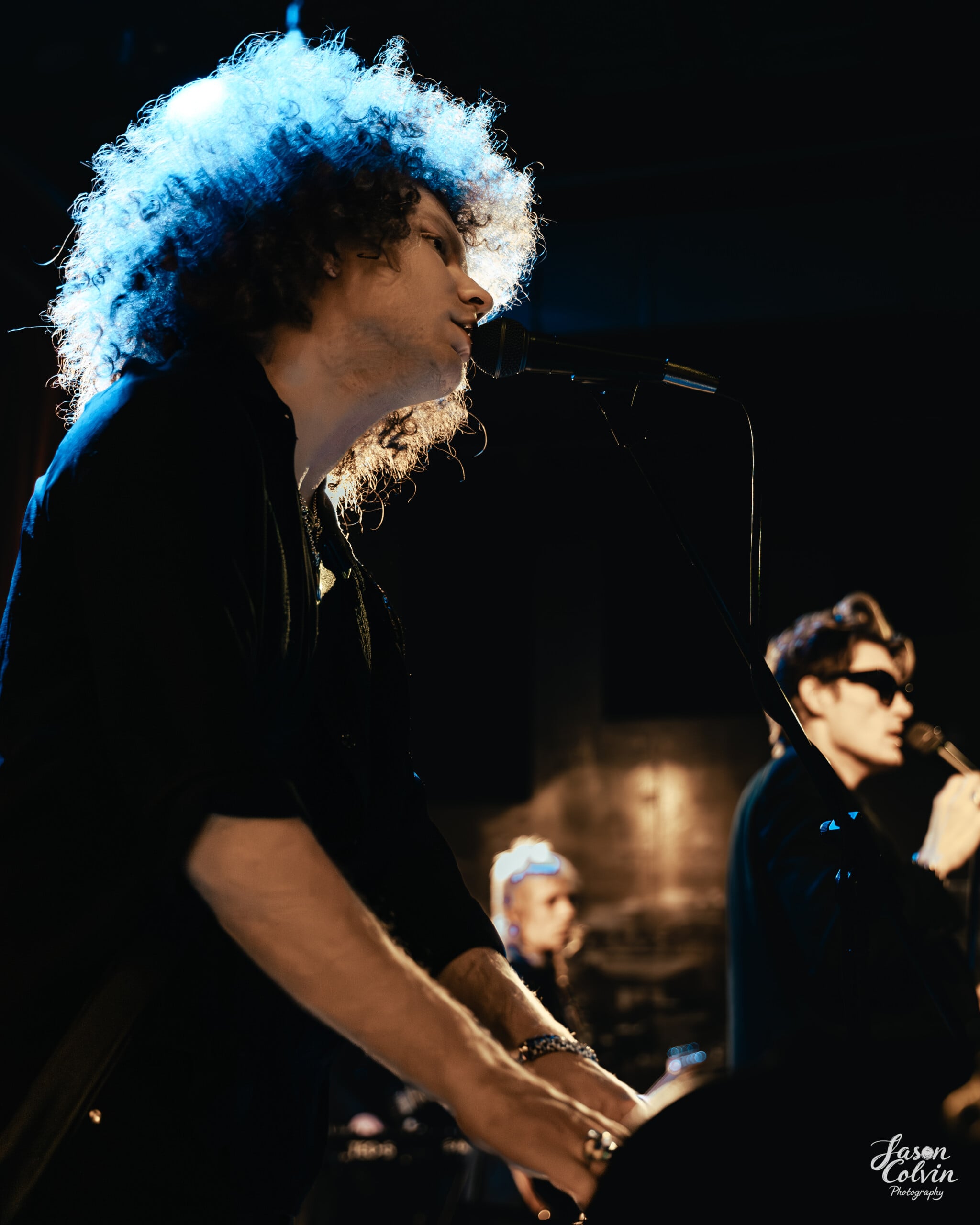 After a relatively quick set change, the night’s headliner, Brigitte Calls Me Baby (BCMB), took the stage. Formed and based in Chicago not long after vocalist Wes Leavins left his home of Texas to play Elvis Presley in the Chicago production of Million Dollar Quartet, Leavins’ performance caught the attention of film director Baz Luhrmann, who initially called on him to be the voice of Presley for his 2022 biopic Elvis.