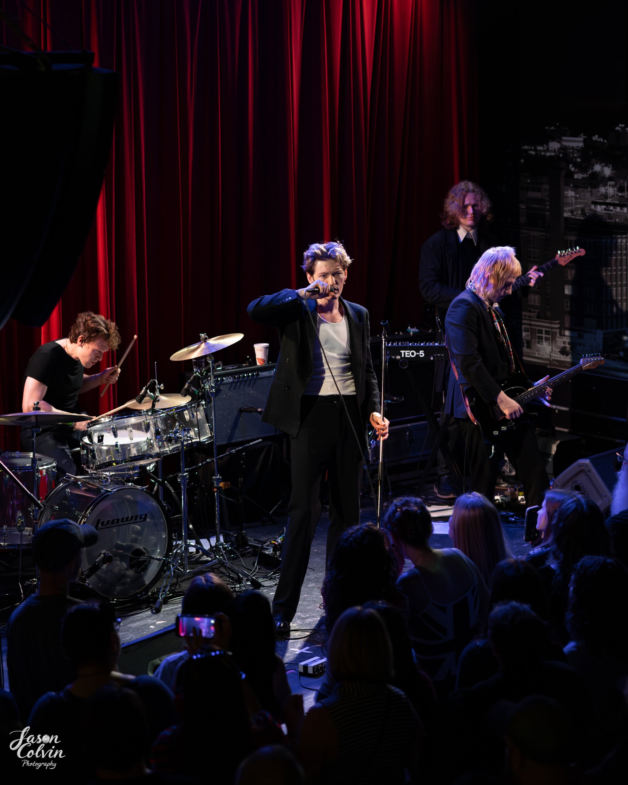 What is their sound, you ask? Well, many have already compared their ‘80s New Romanticism soundscape to bands like The Smiths, The Strokes, and The Cars. Leavins’ crooning voice is likened to artists like Elvis Presley, Roy Orbison, and Morrissey. And yes, those and many other influences are there; however, their sound is also intriguing and thrillingly new in the current landscape of alternative rock. I was immediately sucked into the energy, intrigue, and emotion of their live show.