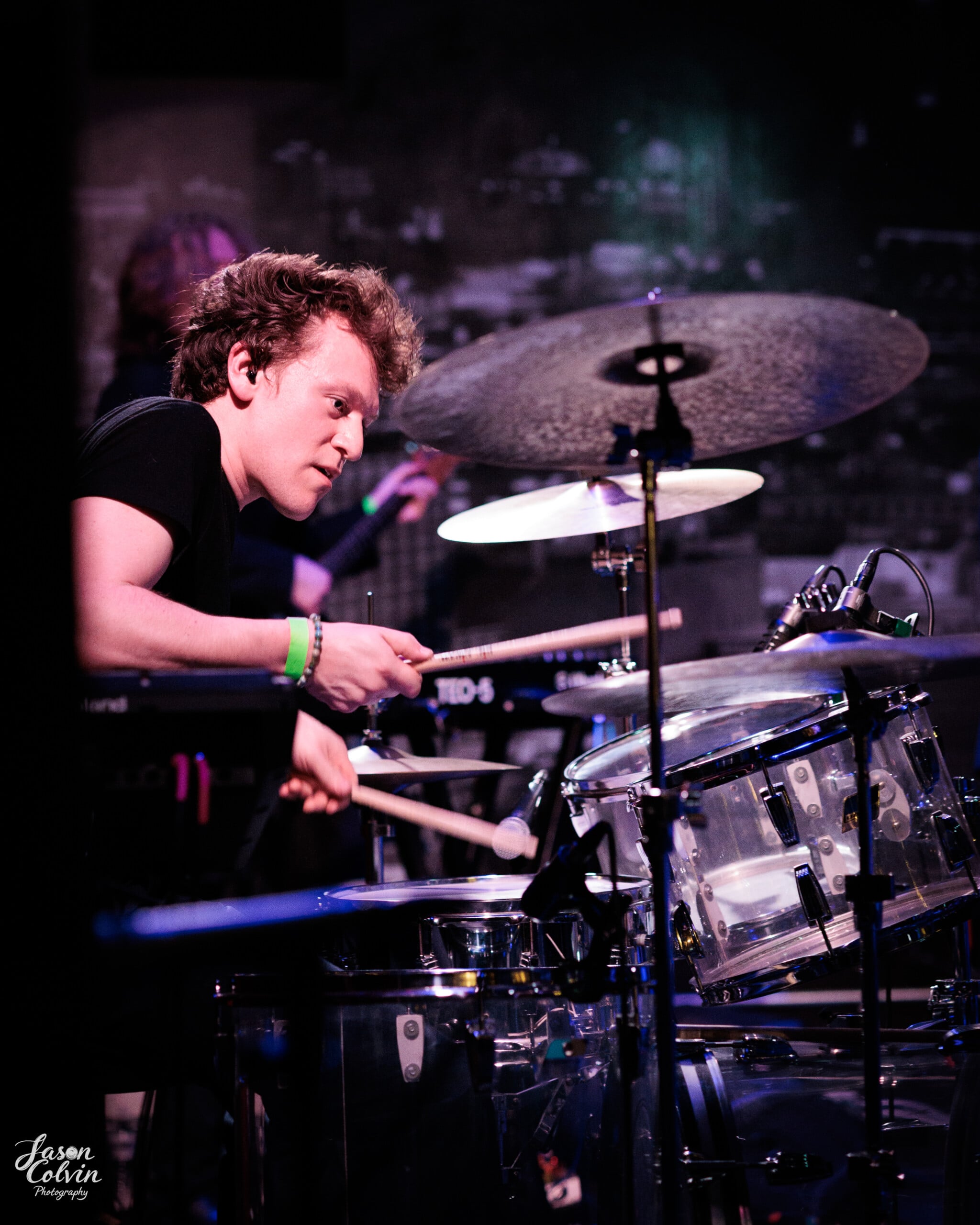 Leavins plays it cool, dressed in style and wearing dark sunglasses while delivering his vocals. Guitarist Fluegel also looks stylish, playing with subtle jangly strumming, then suddenly ripping out power chords or dropping an energizing solo. Wessels’ awesome hair is a band member all its own as he commands the mesmerizing, modern, new-age synth sounds. Playing through the set with that cool swagger is clearly a part of their signature style, but the band still took a few moments to engage with the crowd. At one point, Leavins asked for questions from the fans and then agreed to a request to continue on the show without his sunglasses.