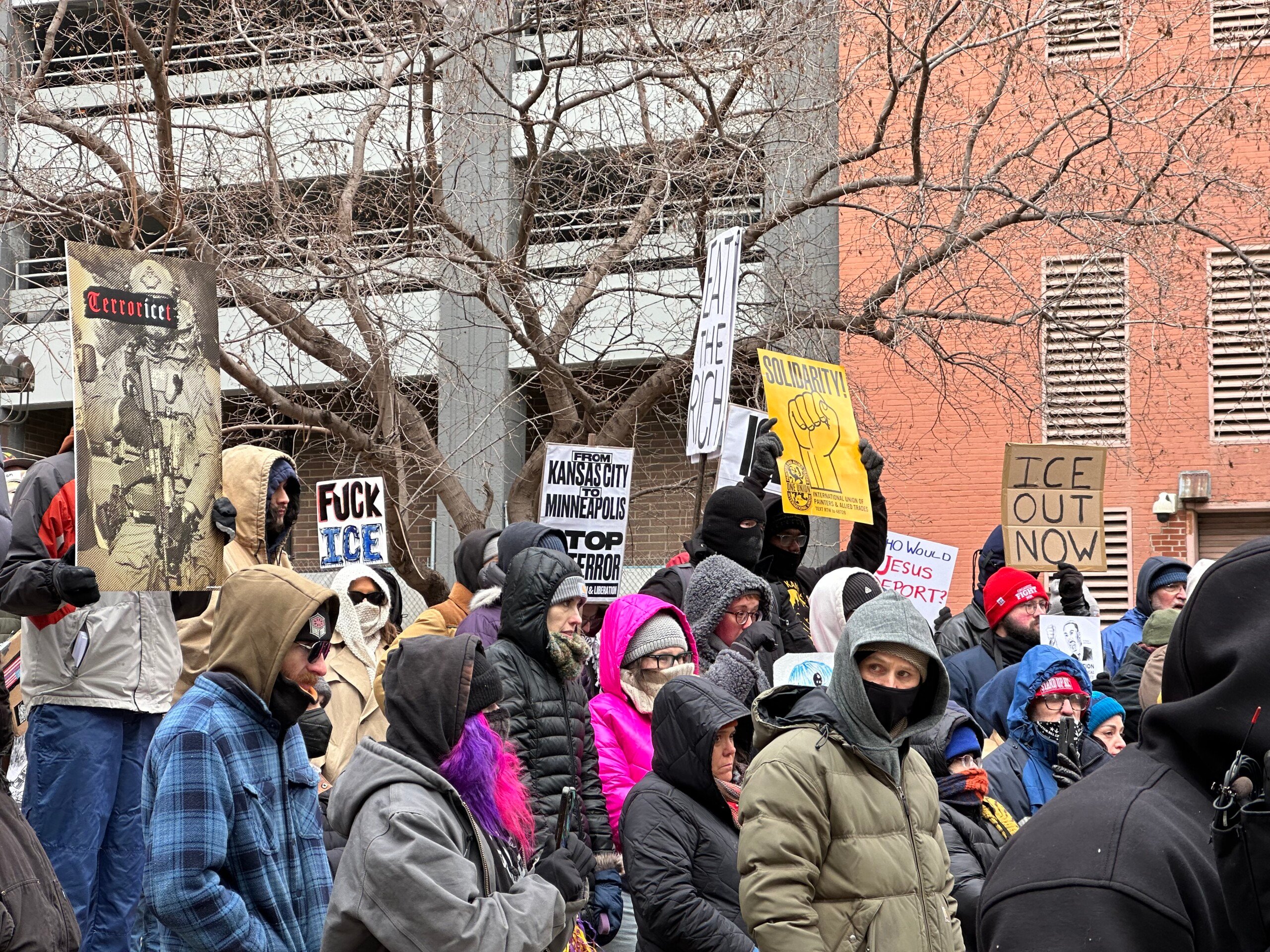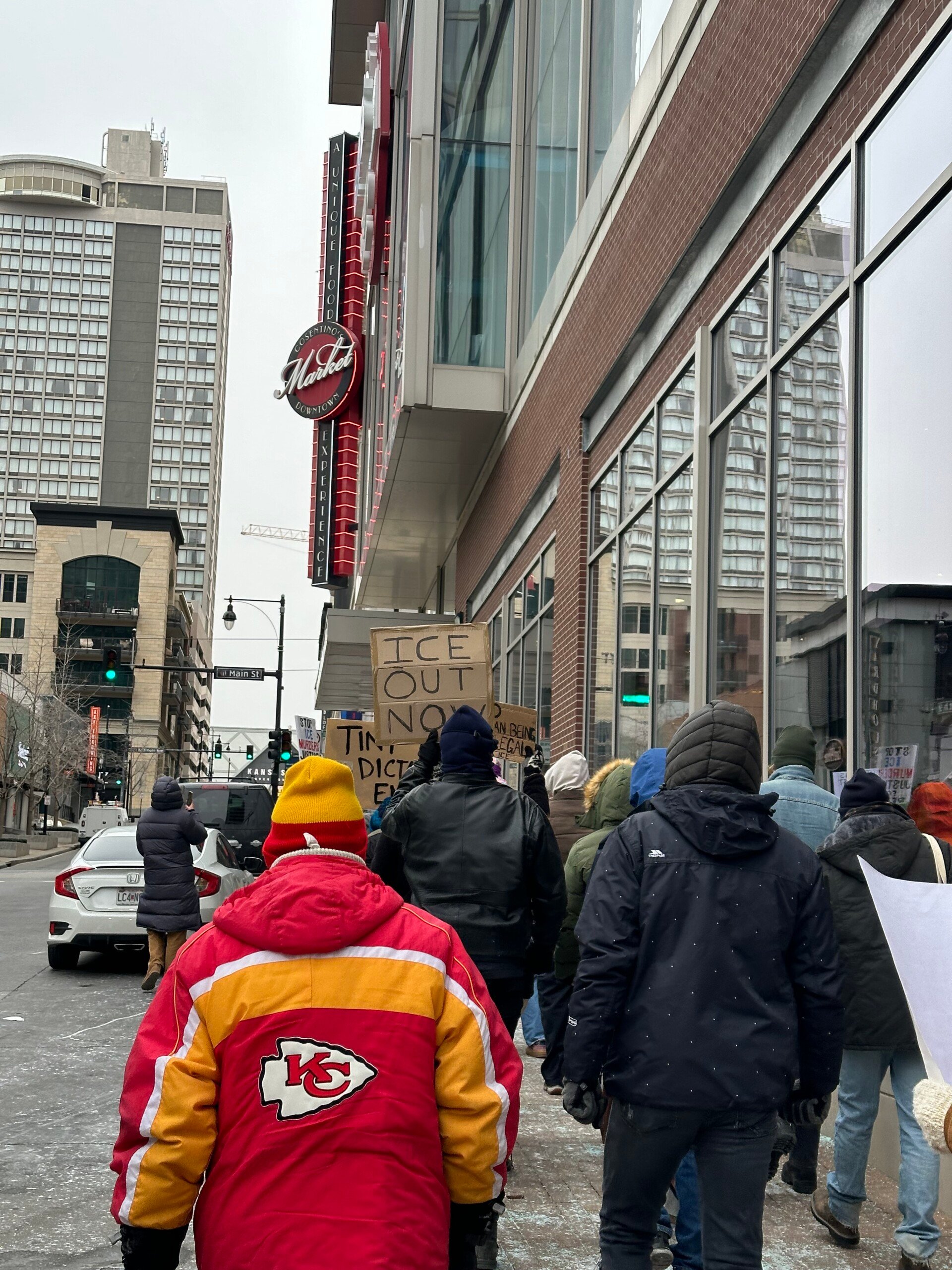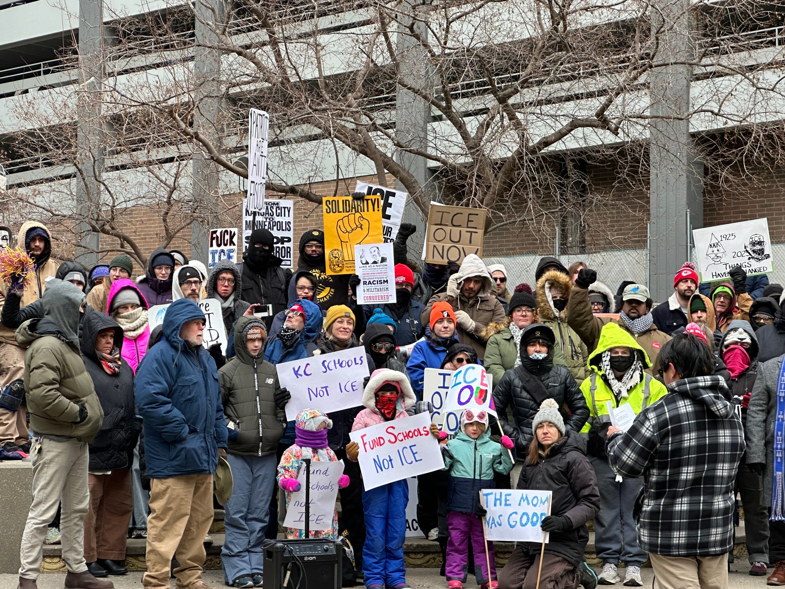 Ahead of this weekend’s snowstorm, Kansas Citians turn out to protests across the metro following Renee Good’s death in Minnesota earlier this month. The crowd braves the cold to rally at Oppenstein Brothers Memorial Park before marching on the Downtown Kansas City area.