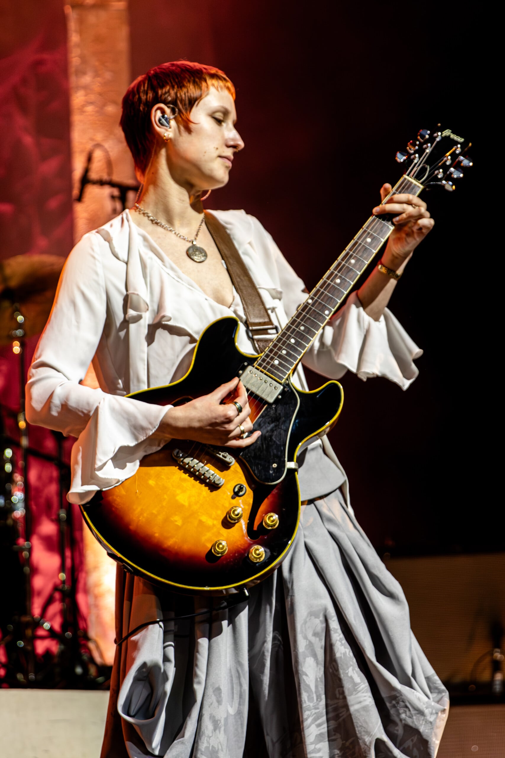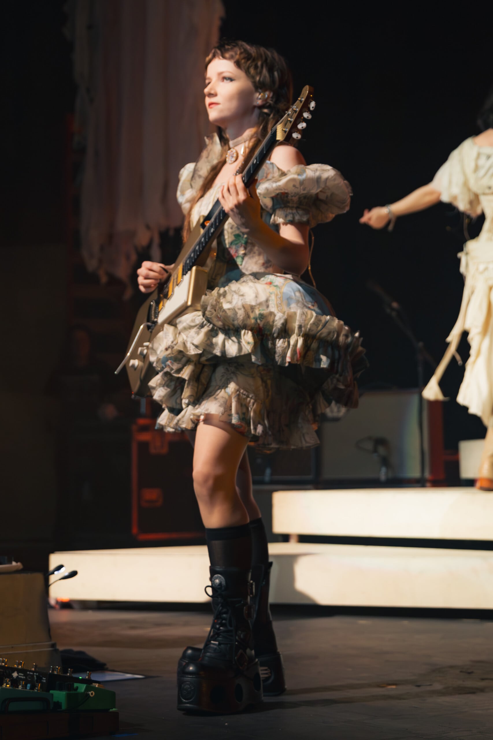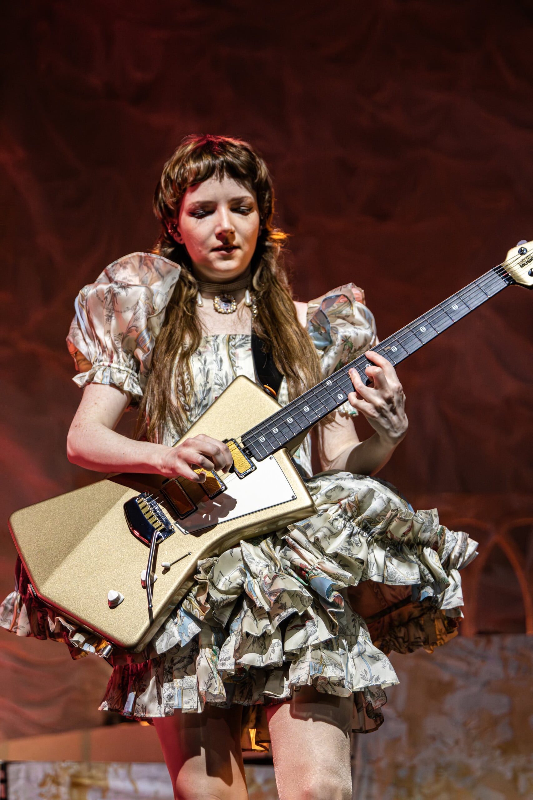 If there was ever a flat point during the show, it was when songs from the band’s first album were performed with lackluster expansiveness. Patterned instrumentation and indifferent faces trudged through the rote monotony of tracks done many times over. The Last Dinner Party came to know these songs well as they toured their only album two years ago in a global circuit encompassing not only countries but also festivals. Though energy as a whole was not lost, any stagnation was brief and barely perceptible, only noted when compared to more illuminating performances of songs they put forward with great enjoyment. Morris’ vocals kept up the energy throughout. Her performance superseded any draw towards the prosaic.