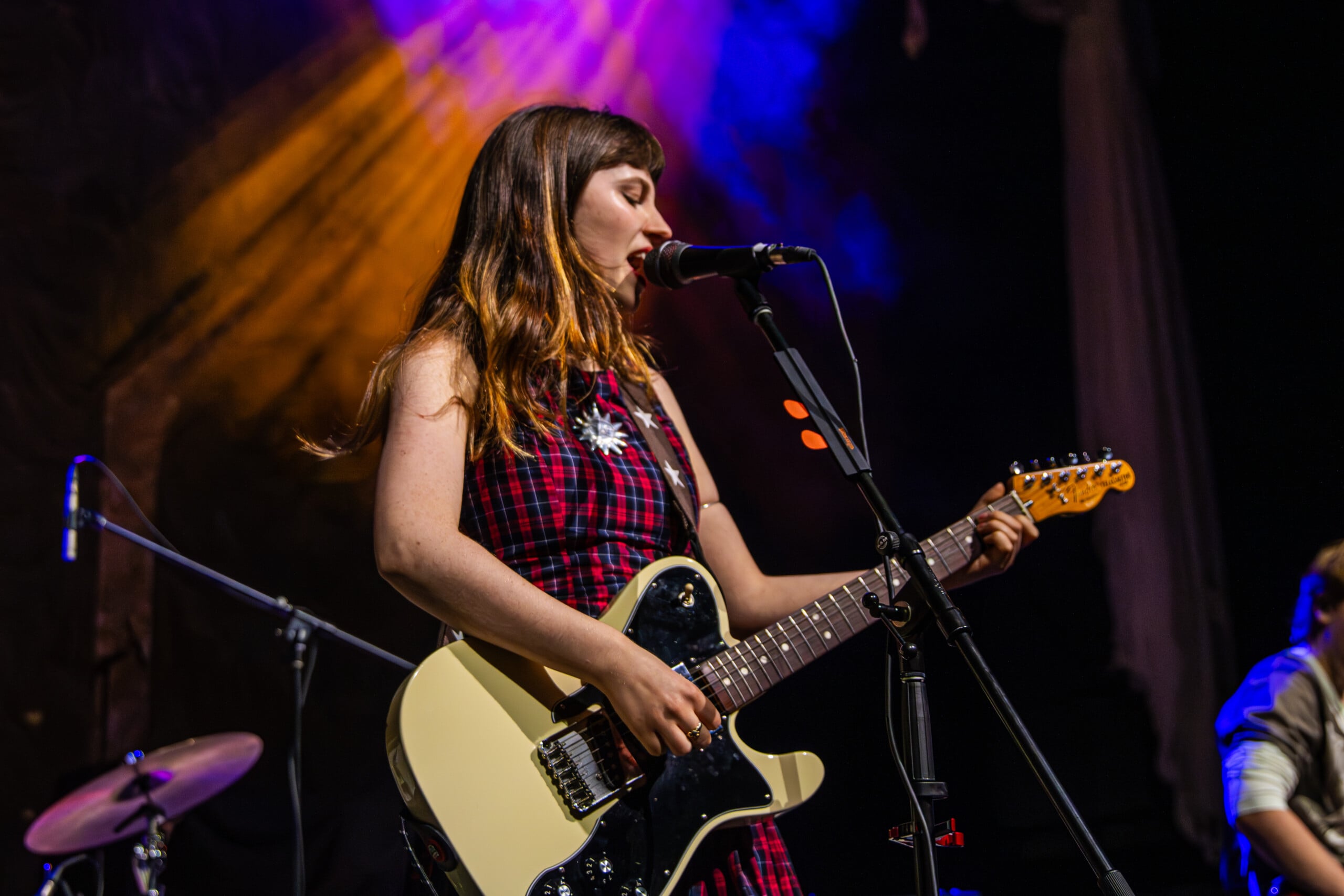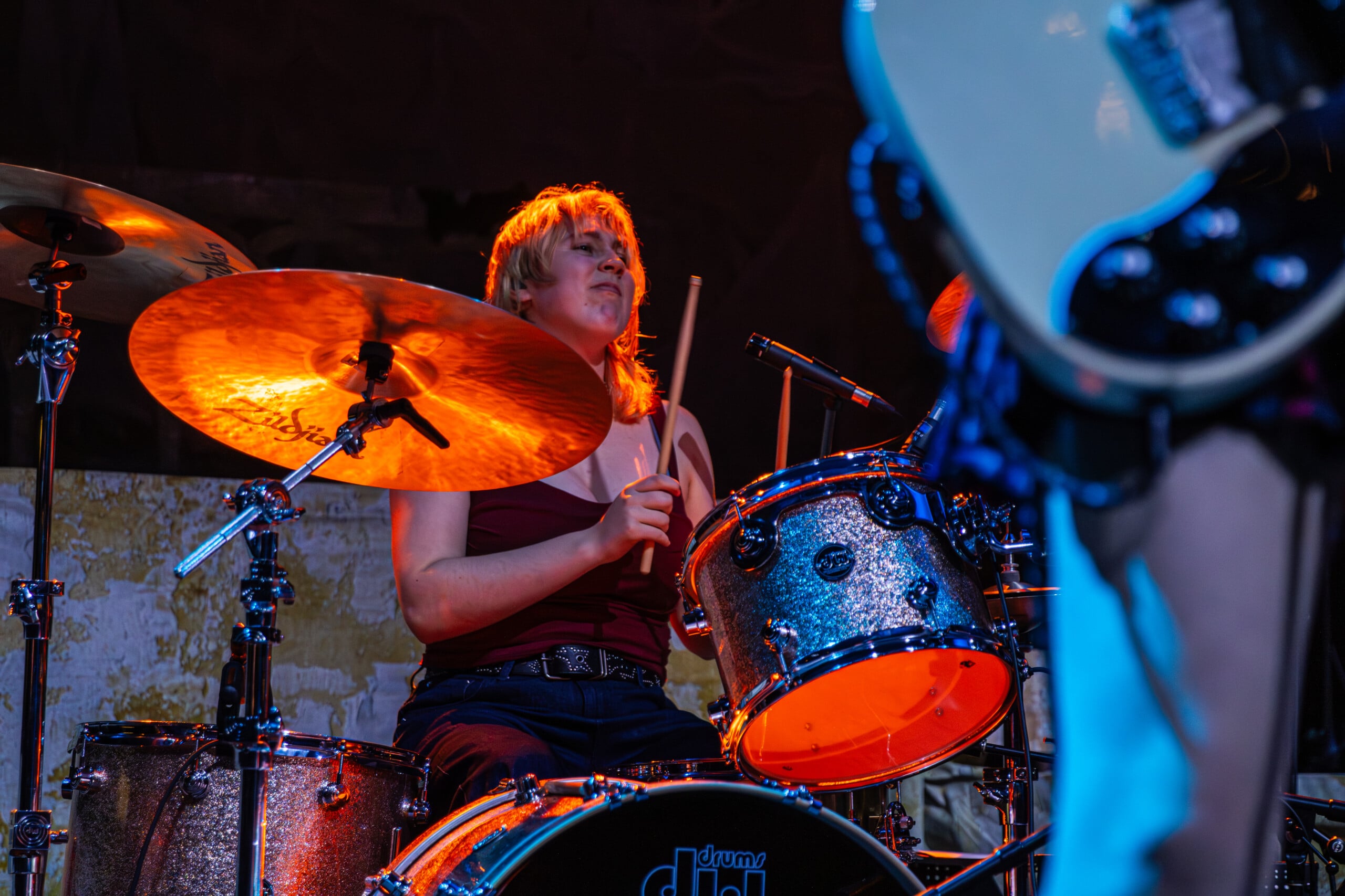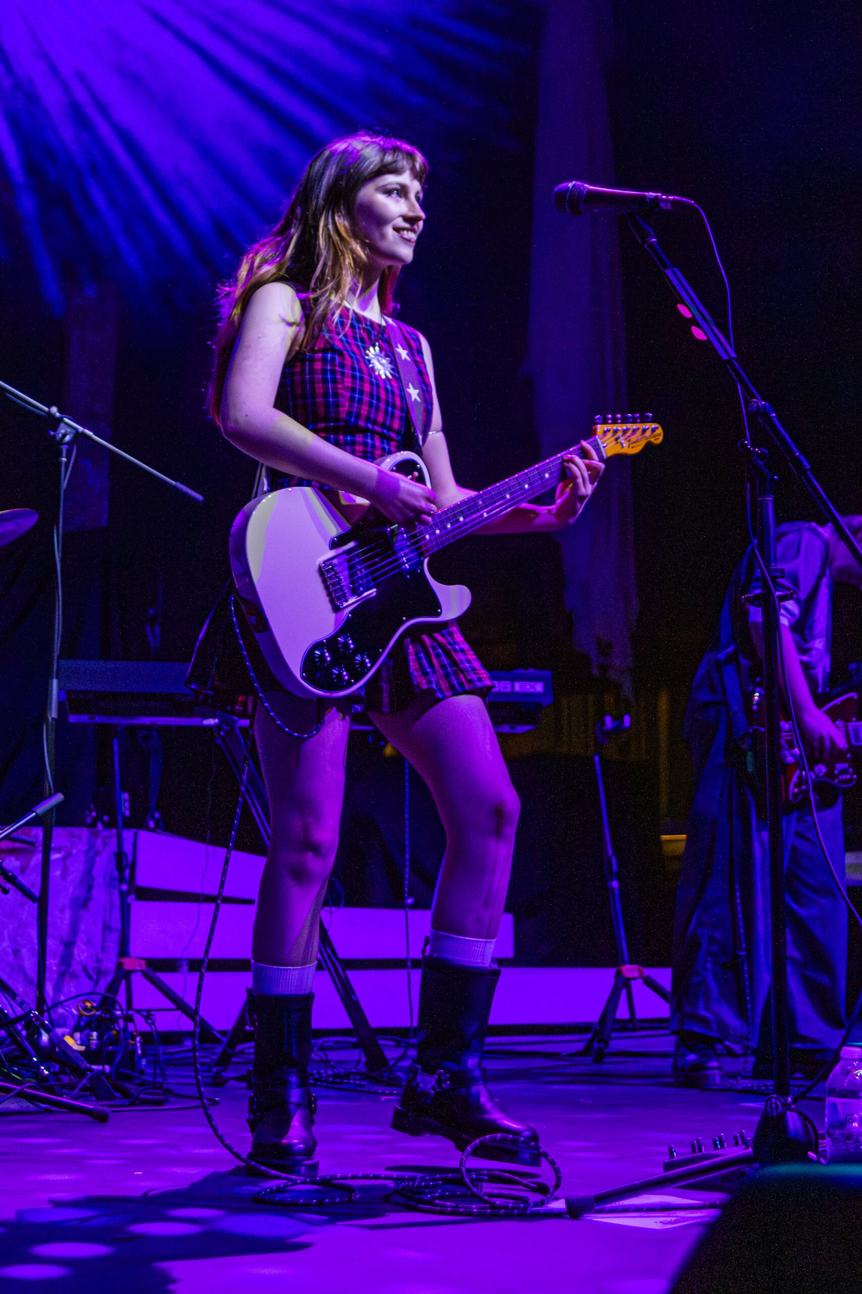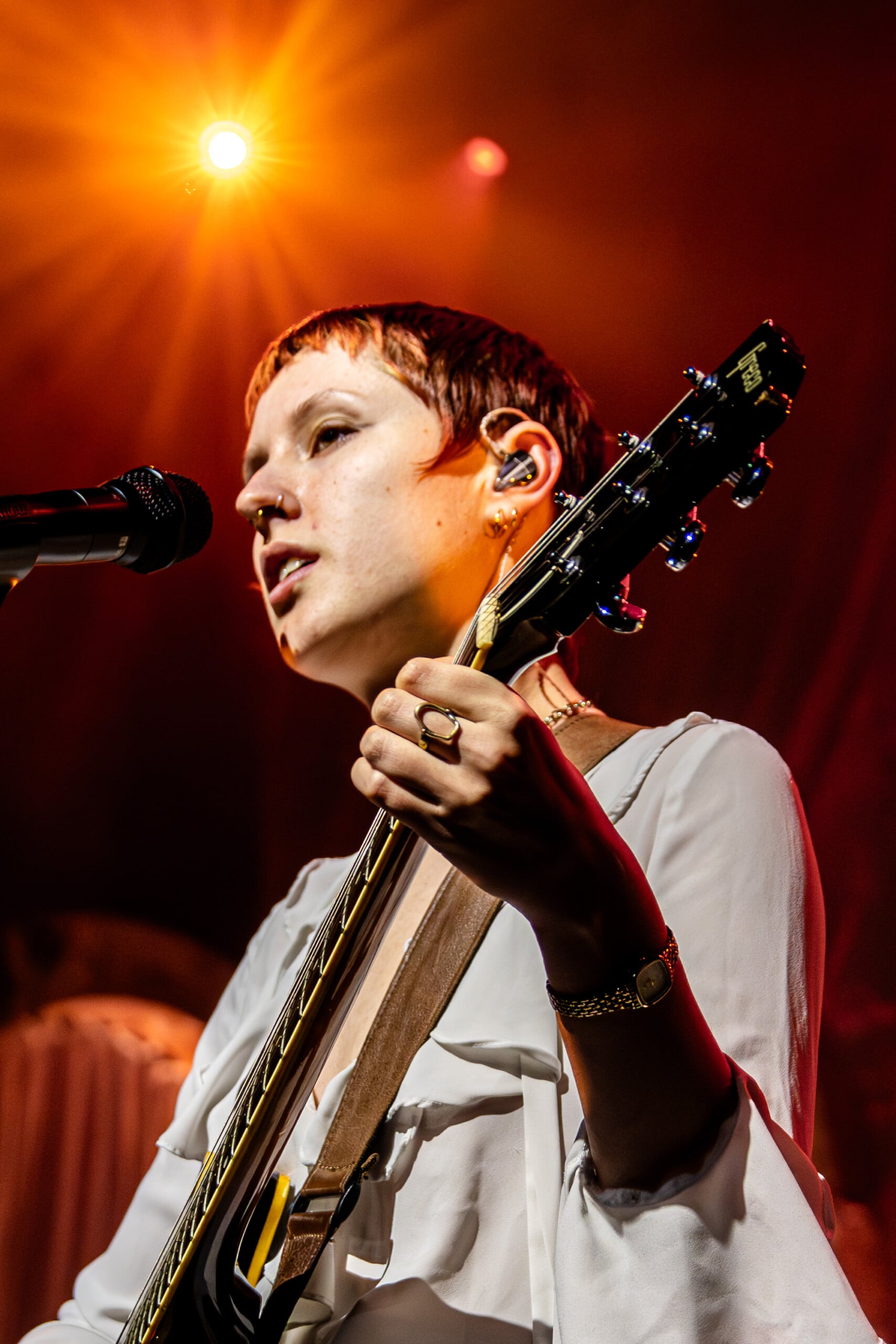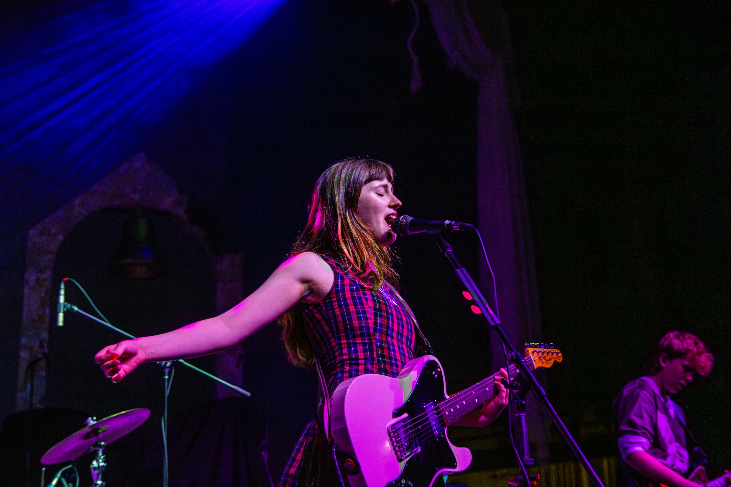 Georgia Davies, who discussed with me her favorite song to write on the recent album, was not present to play the twanging baseline of “Count the Ways” for us. Max Lilley stood in for Davies, who badly hurt her back, Morris tells us, though she wishes to be there. Throughout the set, backline technician Lilley is in smiling disbelief that he’s on stage.