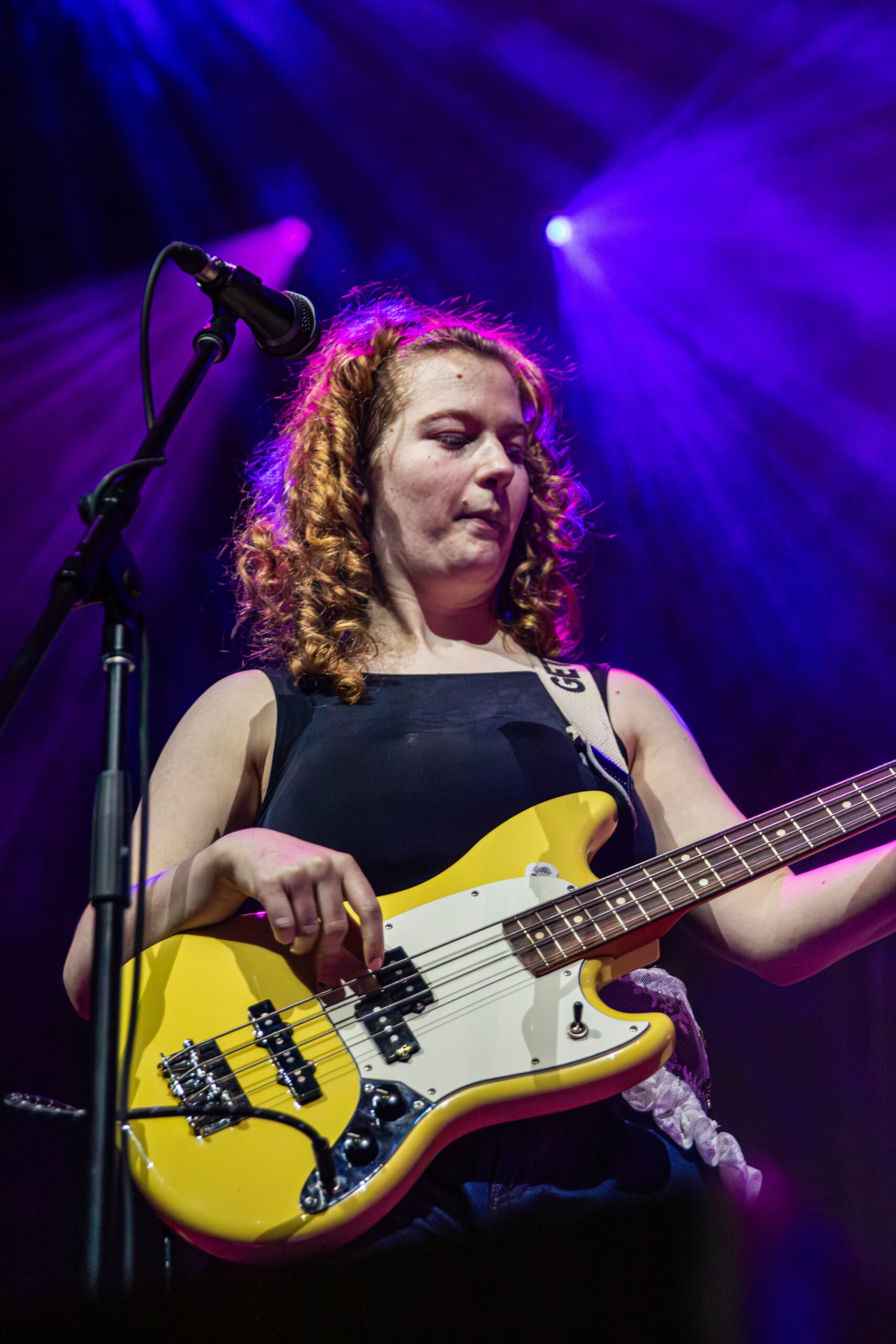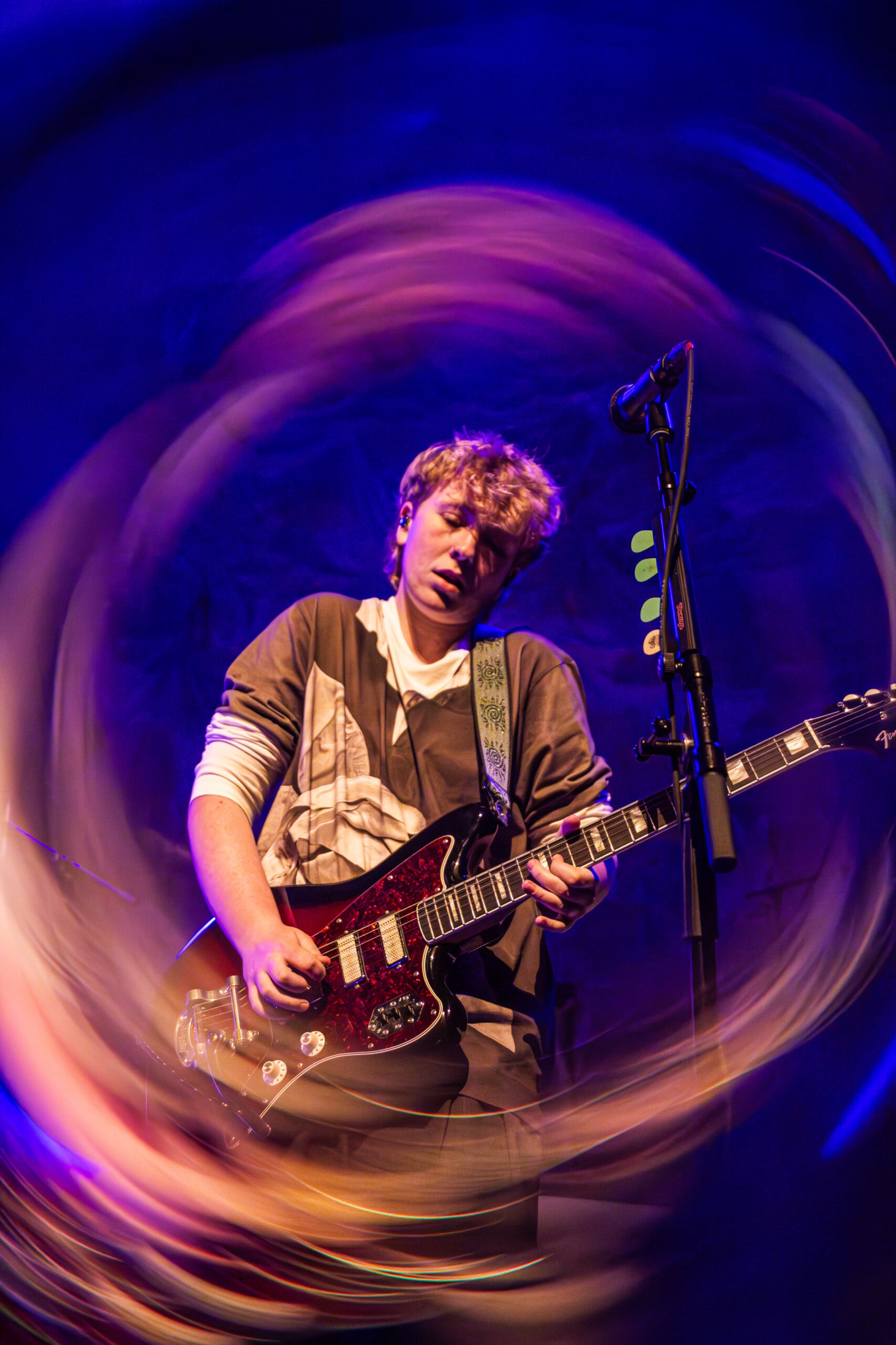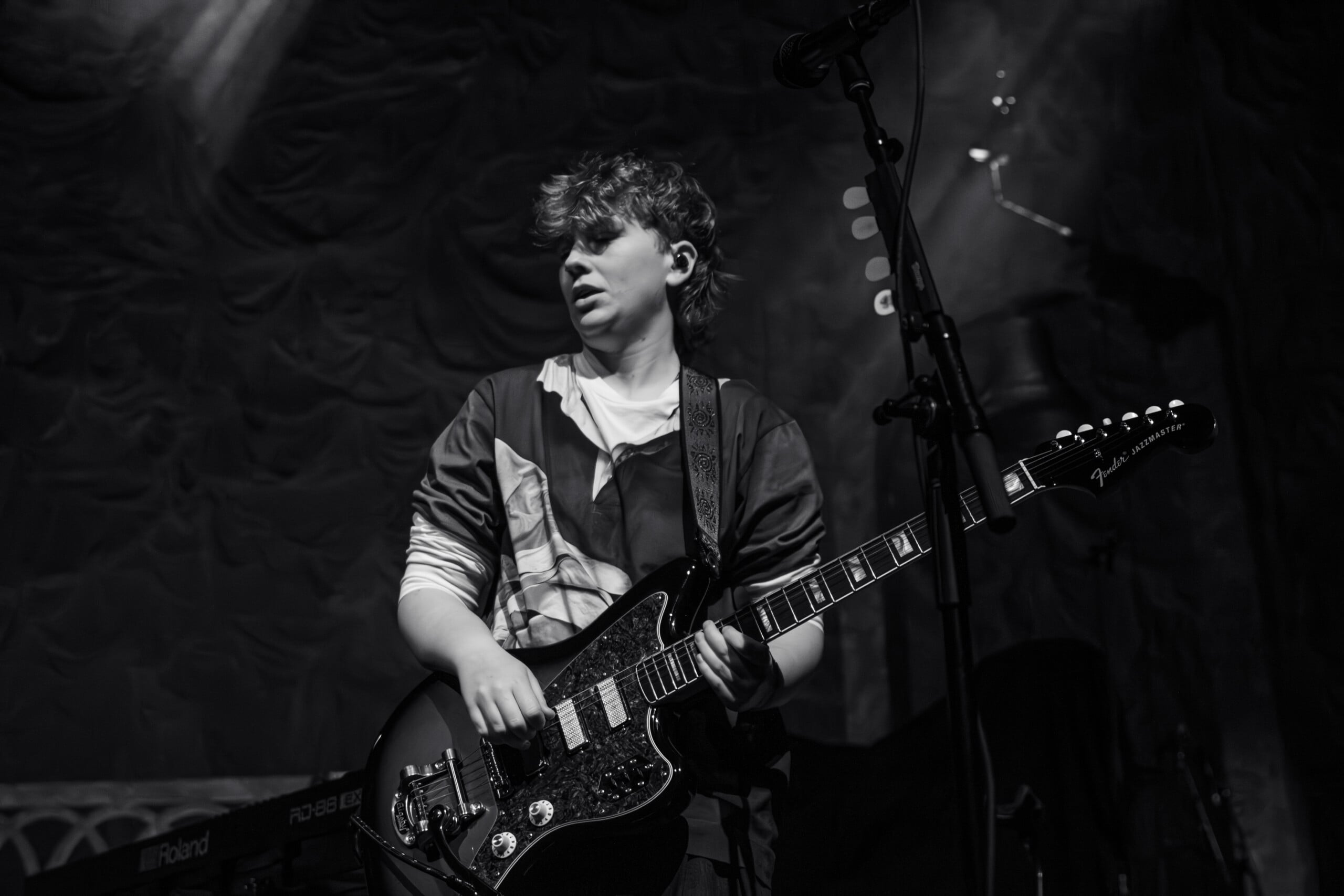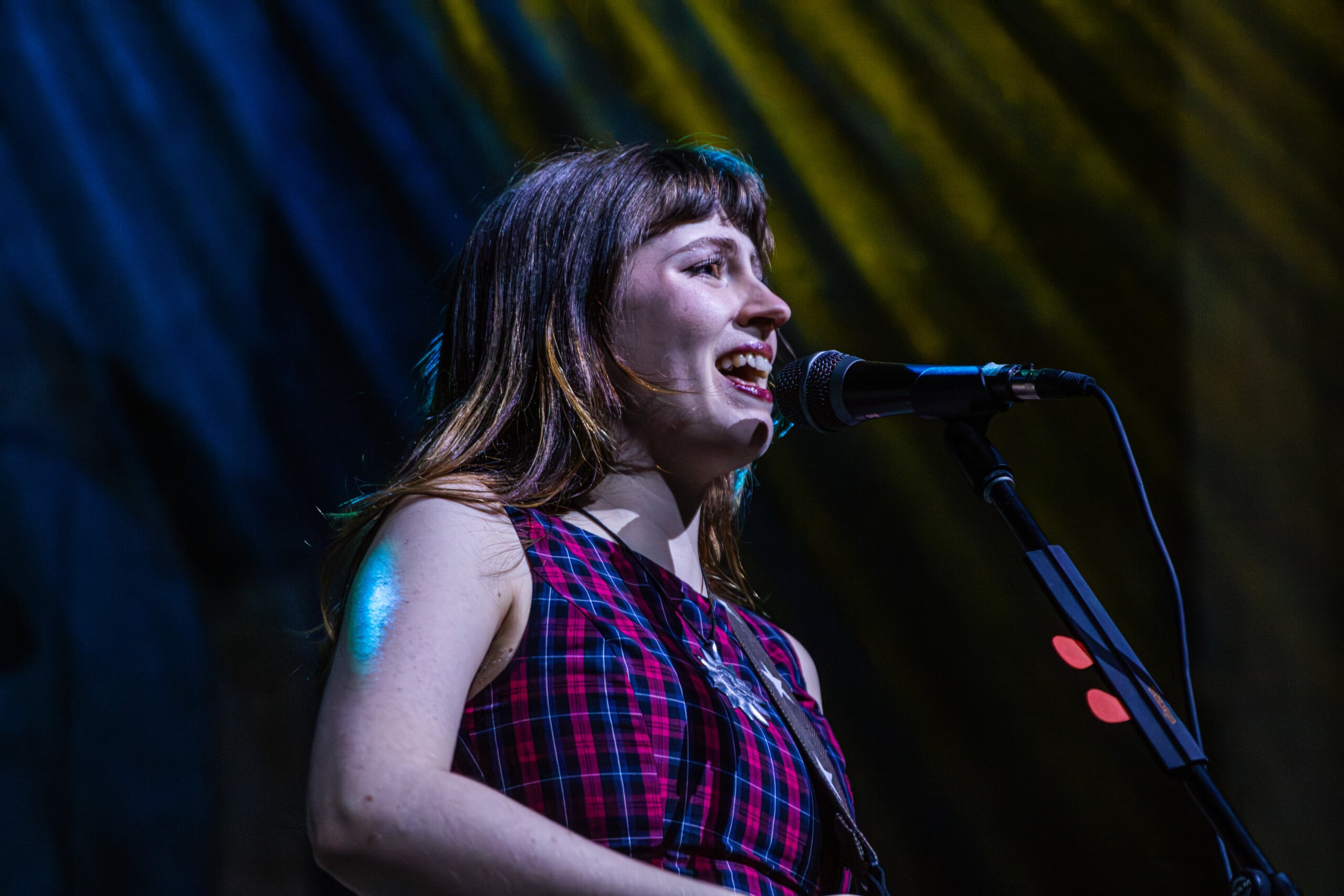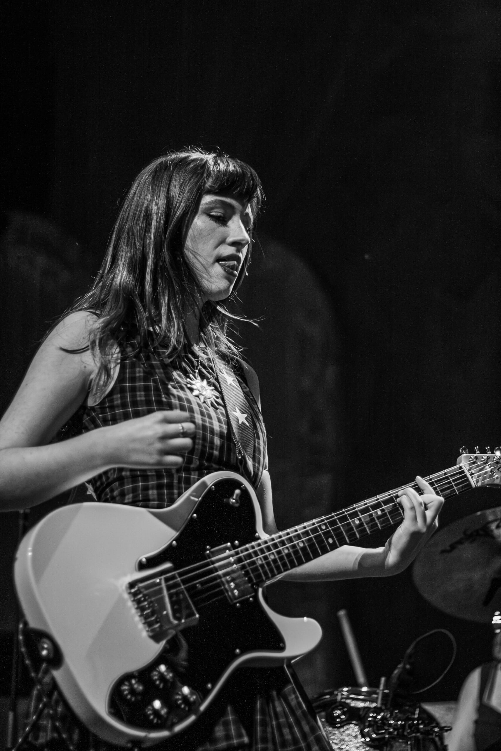 Georgia Davies, who discussed with me her favorite song to write on the recent album, was not present to play the twanging baseline of “Count the Ways” for us. Max Lilley stood in for Davies, who badly hurt her back, Morris tells us, though she wishes to be there. Throughout the set, backline technician Lilley is in smiling disbelief that he’s on stage.