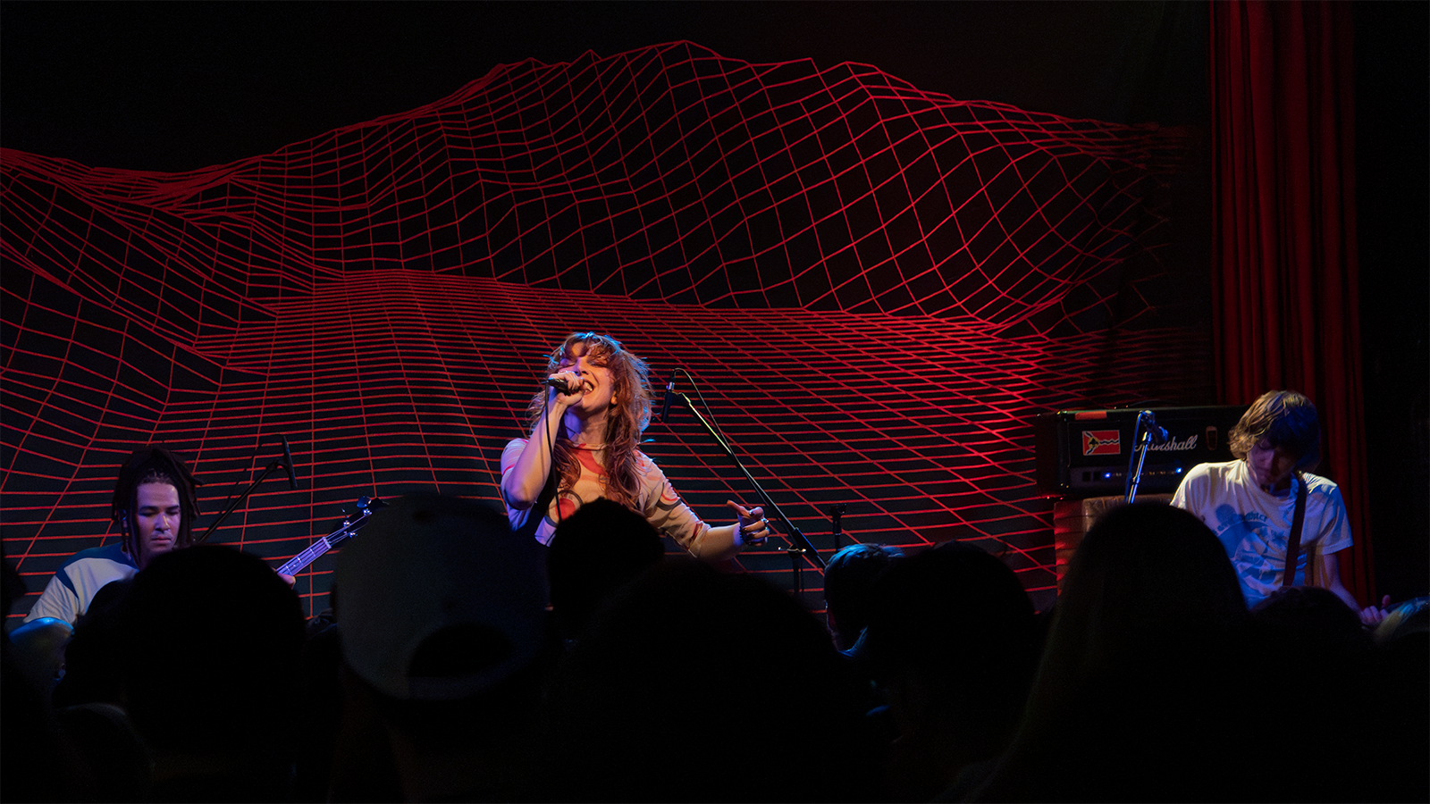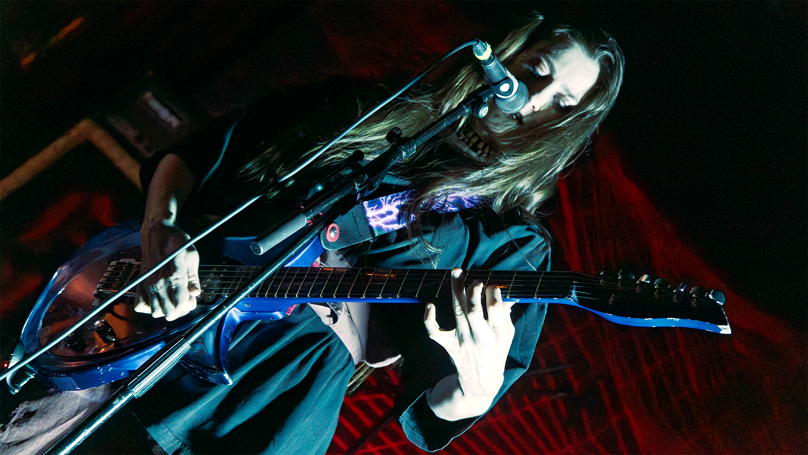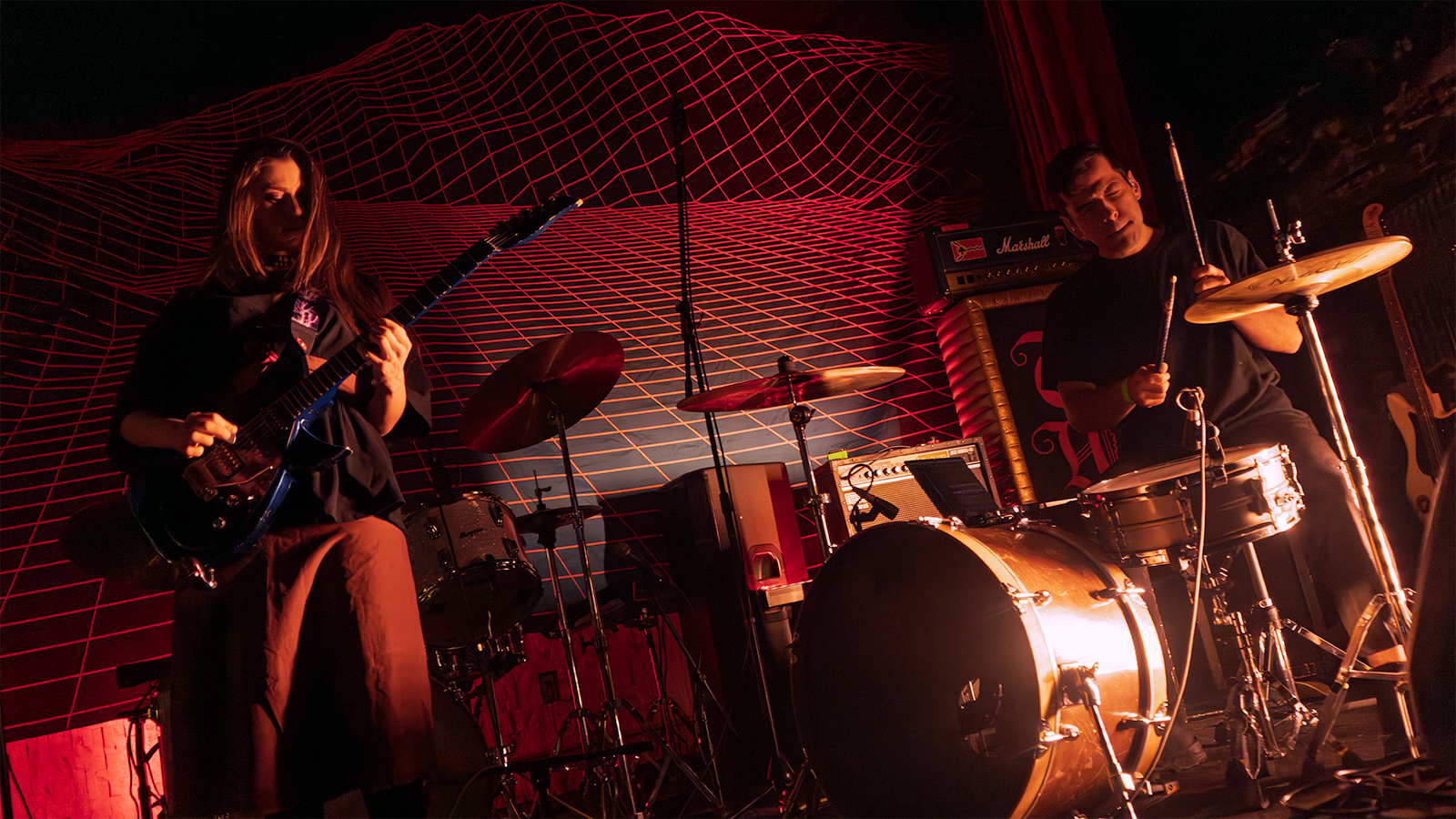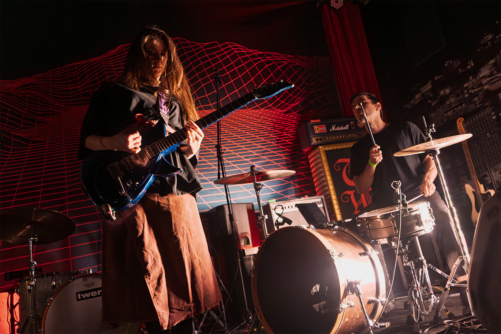 Another punky duo, Monsoon, has toured with Twen on three of four legs of their recent circuit. With members Sienna Chandler and Joseph Kegel blanketed in long shadows, their explosive intensity helped smooth the edges of the jagged, glass-crushing art rock on their 2022 album, Ghost Party.
