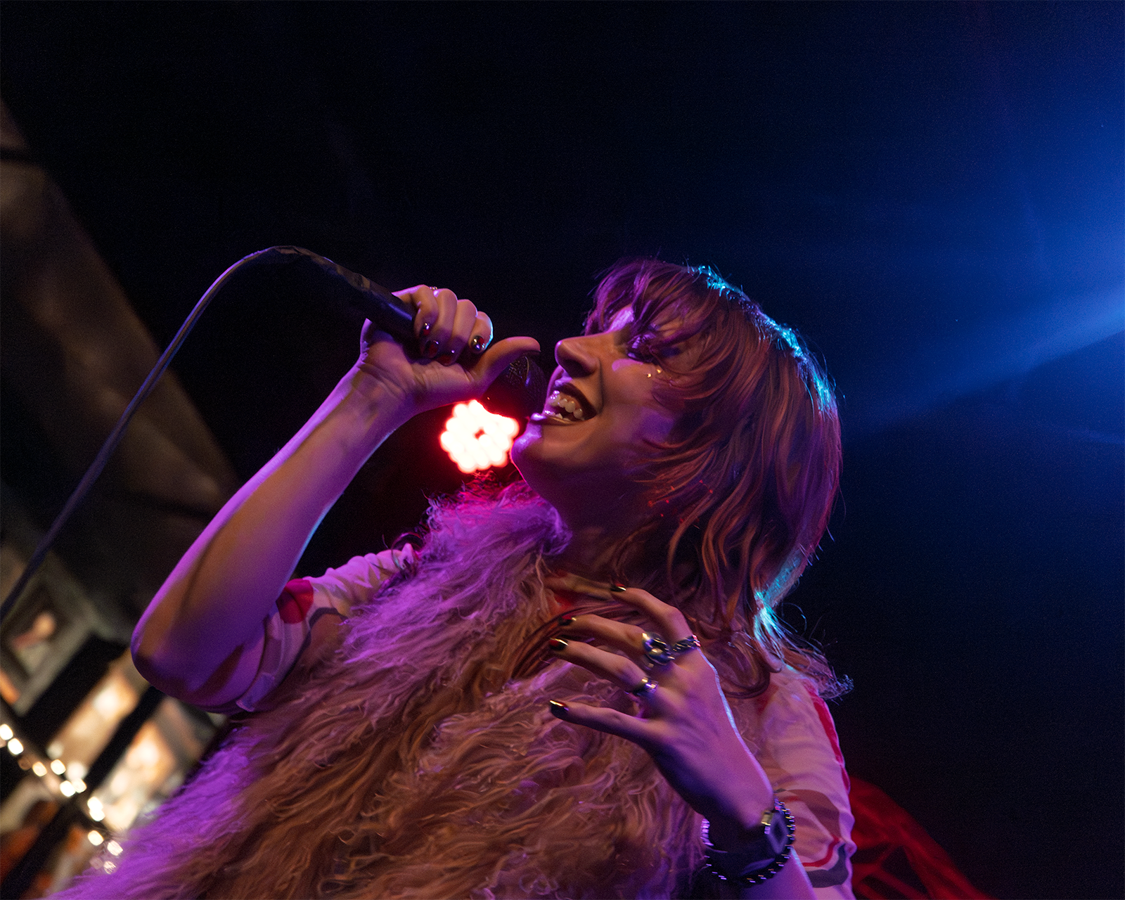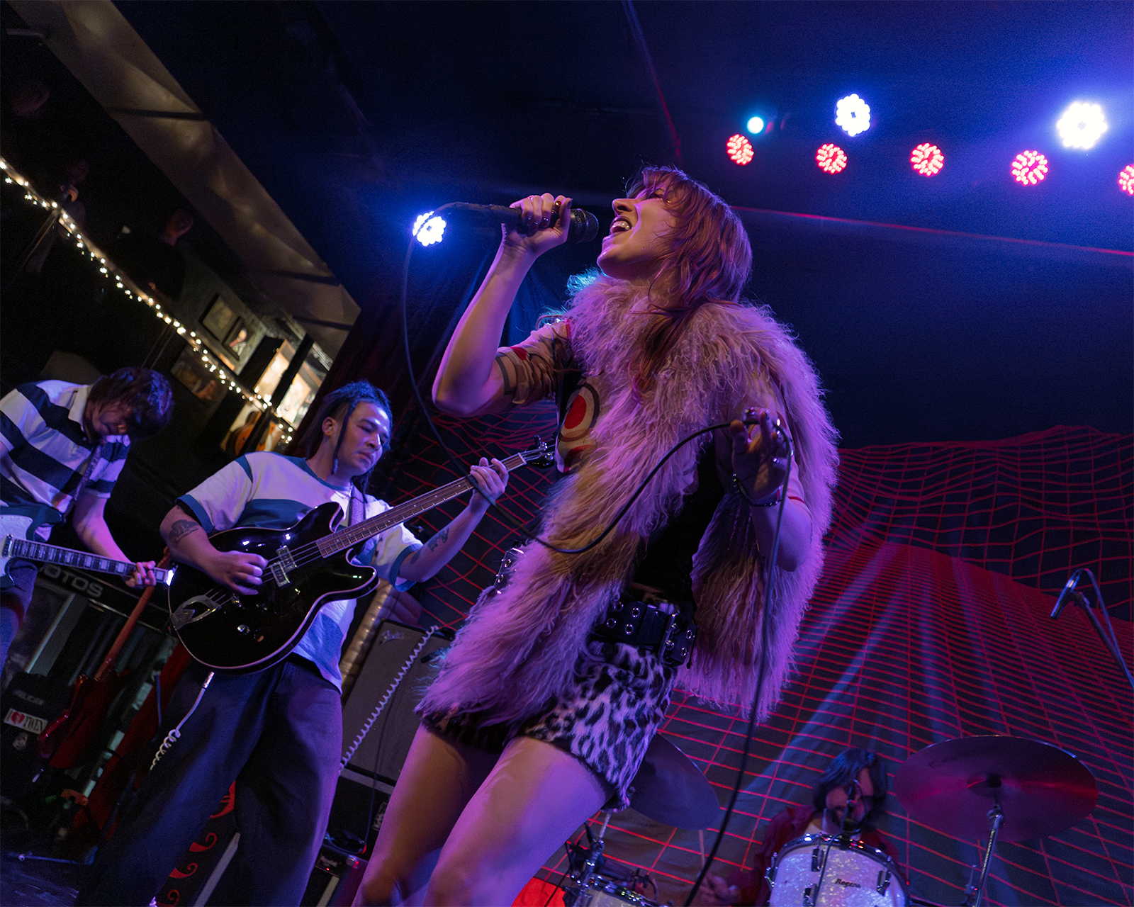 Each member of the touring five-piece had hair long enough to shake, with the lone evidence of ears being a glimpse through the locs of bassist Camden Pink and the precision with which the group blended their unique formula of indie pop, funk, and alternative. Perhaps at the sacrifice of subtle psych-rock elements, the volume generated by the five-piece was a welcome arrangement during the run of certified bangers stashed for the end of the set – leveling up Fate Euphoric favorites “Allnighter” and “Godlike,” producing a dreamy, singalong atmosphere for the finale “Hahahome,” and, on One Stop Shop’s title track, providing insight into their van-lifing, DIY approach.